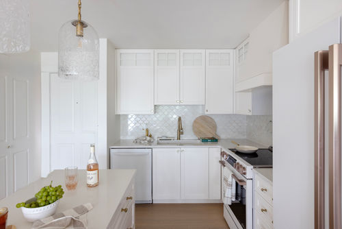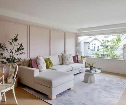 This Port Moody condo underwent a complete transformation, evolving from a dated and colourless space into a warm, elegant home filled with personality and glow. The design concept centred around bringing softness, light, and a sense of quiet luxury to every corner. The kitchen became the heart of the home, reimagined with crisp white cabinetry and rose gold appliances that strike a perfect balance between modern minimalism and subtle sophistication. Warm, diffused ambient lighting was added throughout to create a luminous atmosphere that shifts beautifully with the time of day. In the primary bedroom, a vintage inspired floral wallpaper introduces a romantic, nostalgic touch - a gentle contrast to the sleek finishes elsewhere in the home. The living room is wrapped in a soft earthy pink tone, chosen to cast a golden-hour warmth across the space and unify the overall palette with natural, grounding elegance. The renovation celebrates the beauty of restraint, warmth, and thoughtful detail - a serene retreat that feels both contemporary and timeless.